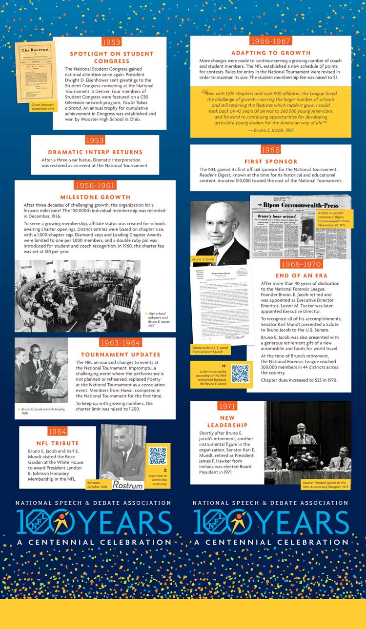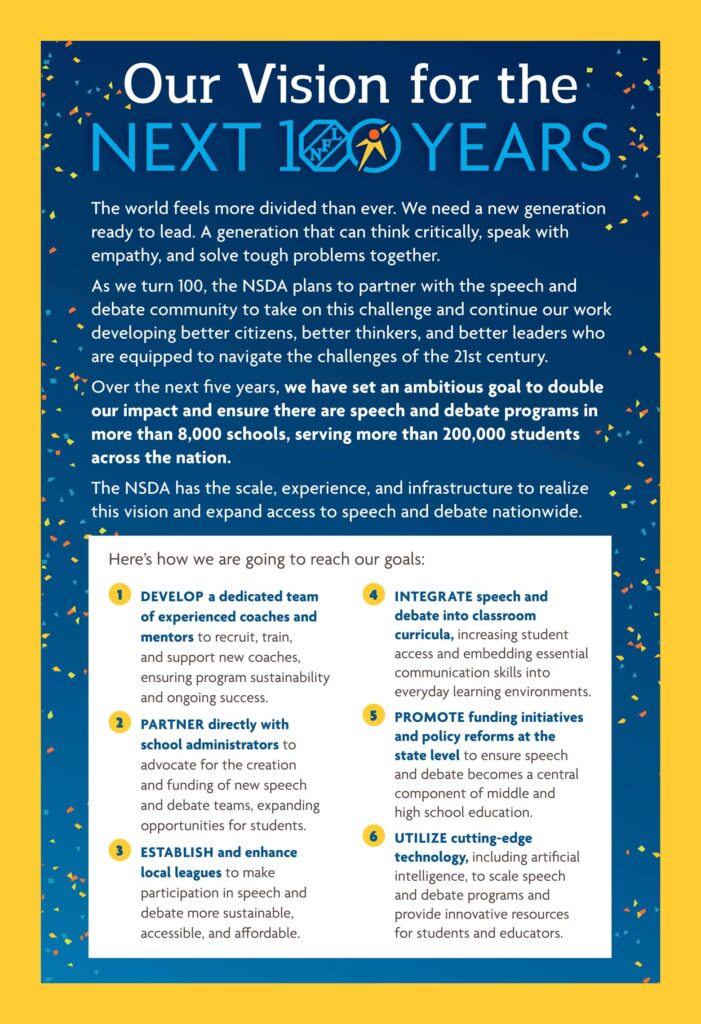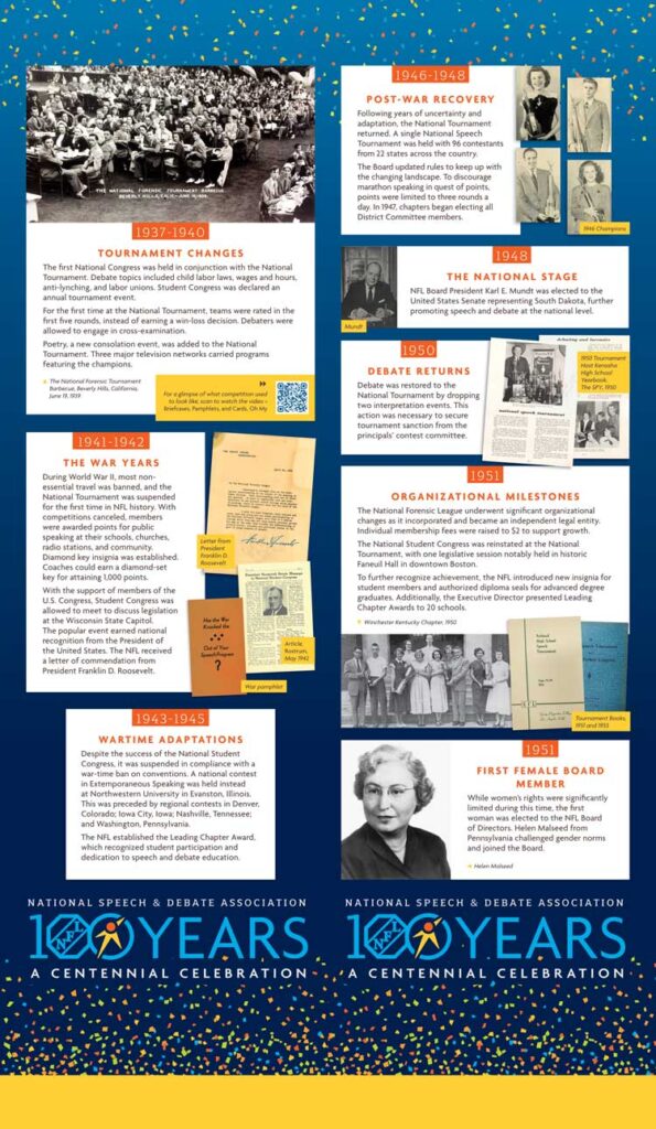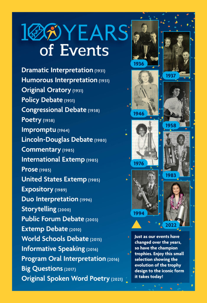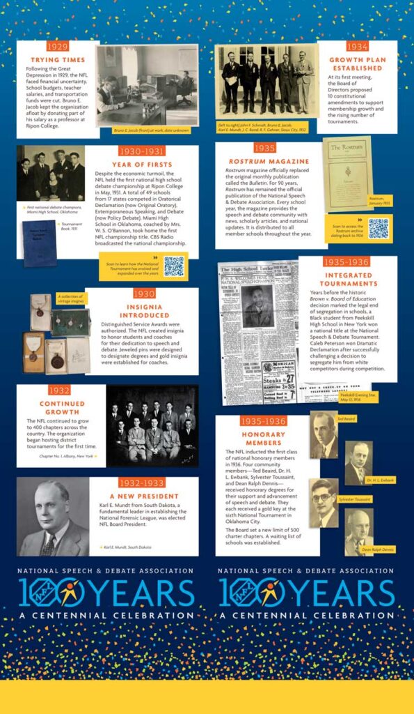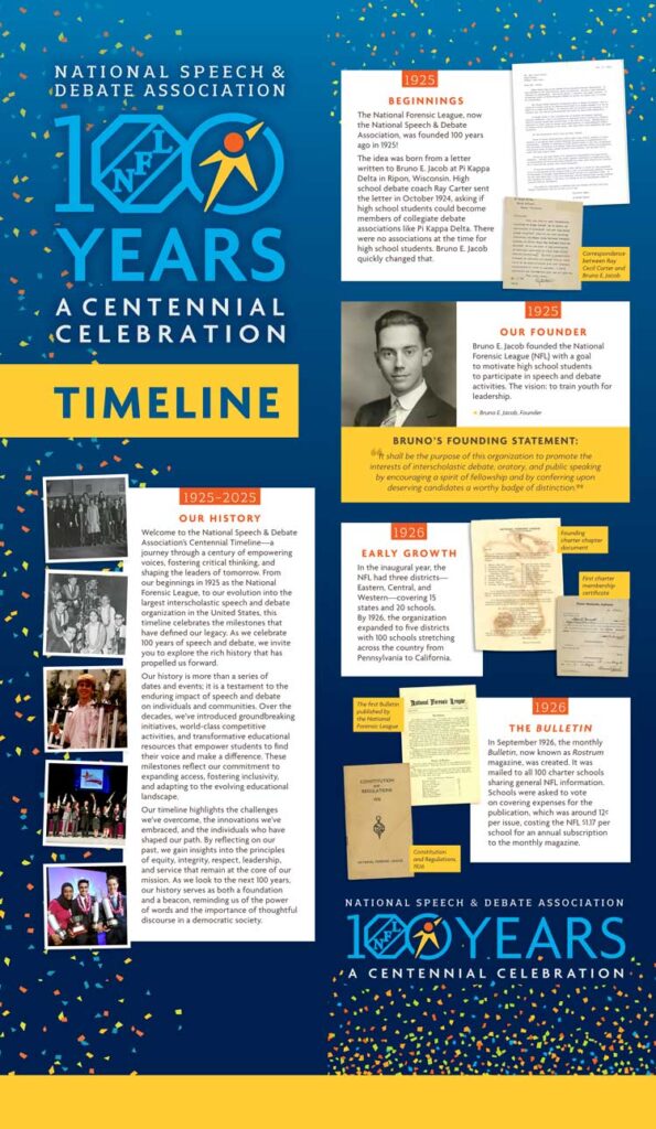 Explore a century of speech and debate history! Learn how the organization started in 1925, challenges we’ve faced over the years, and how we plan to further our reach over the next 100 years.